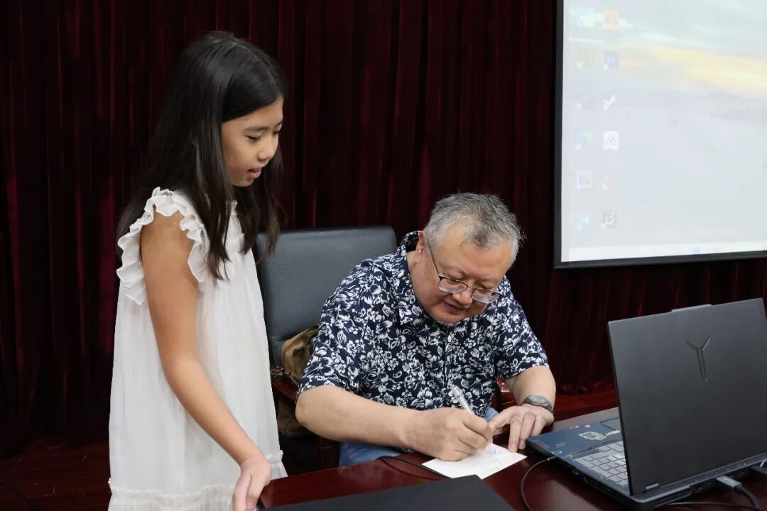 10-jara aŭskultanto petas subskribon de Liu Haitao.