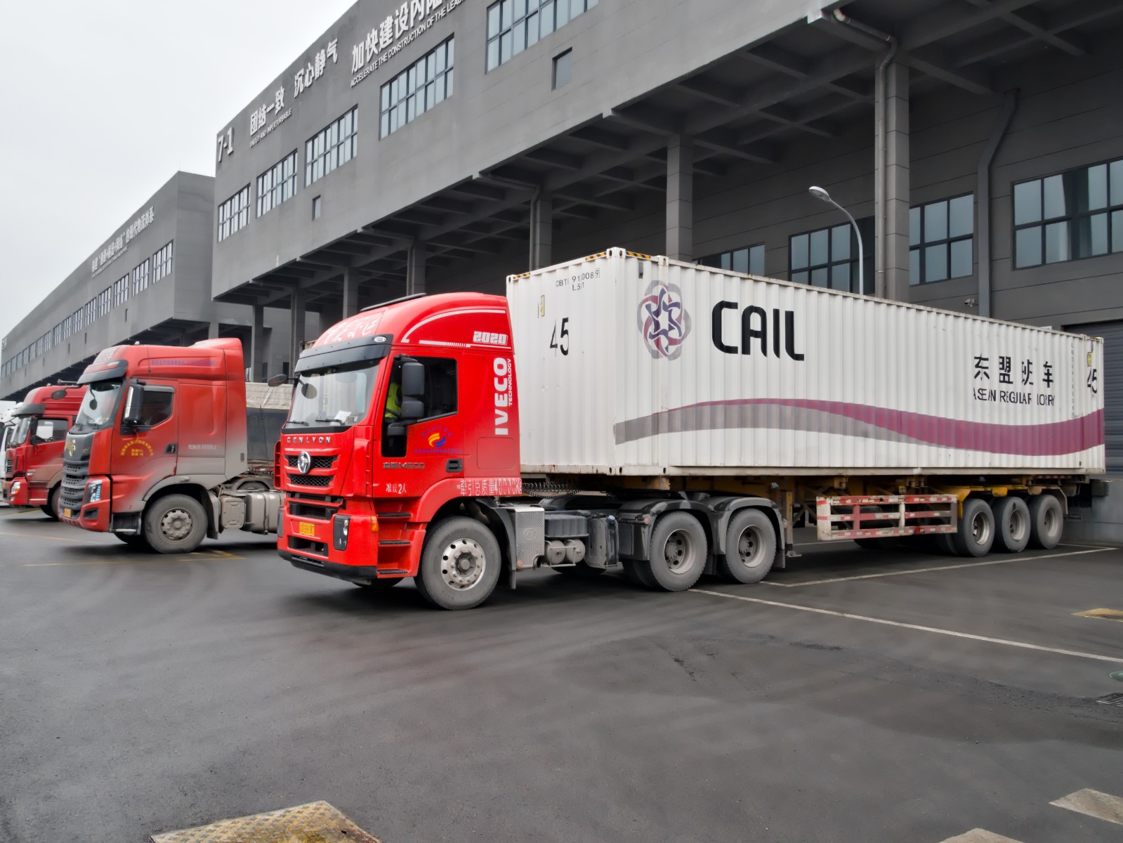 Kamionoj kun konteneroj laŭ normoj de ASOAL en la municipo Chongqing de Ĉinio