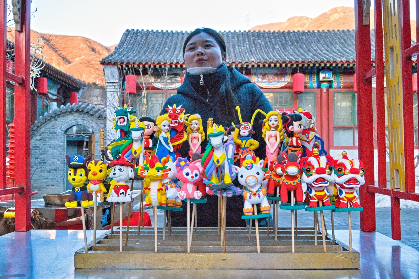 Dume, ene de granda konstruaĵo, lokaj kamparanoj kaj metiartistoj estis vendantaj tipajn produktojn kaj metiartaĵojn de Yanqing. Tiam mi memoris pri alia vojaĝo farita de mi, ankaŭ en epoko de la Printempa Festo, kiam mi vizitis surstratan bazaron en alia loko de Yanqing kaj ankaŭ tie vidis pluraj lokajn specialaĵojn kune kun tipaj produktoj por la Printempa Festo.