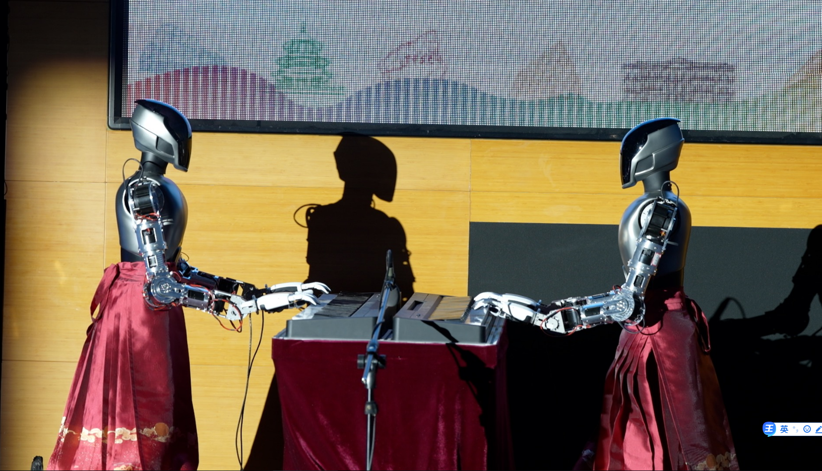 Ĉinaj robotoj ludas pianon dum la koncerto.