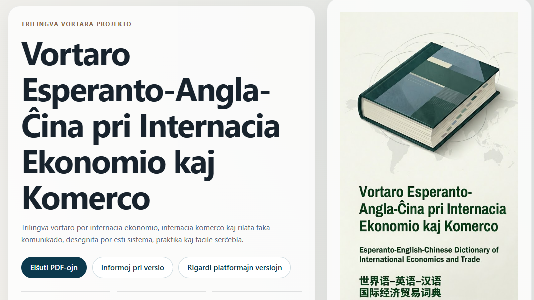La vortaro estas prezentata pere de apartaj paĝoj en Esperanto, la angla kaj la ĉina. La nuna versio estas 4.33.0 kaj enhavas 3 047 kapvortojn.